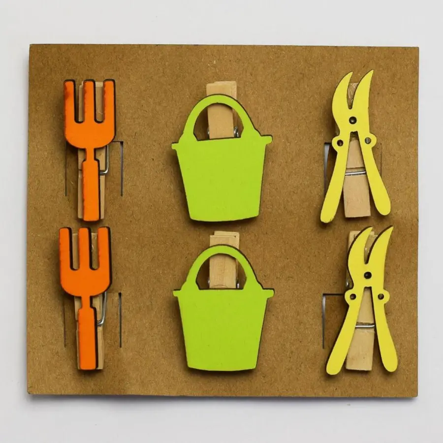 Dekorační nůžky / kyblík / špachtle na špendlíku, sada 6 kusů, délka: 3,5 - 4 cm, mix barev