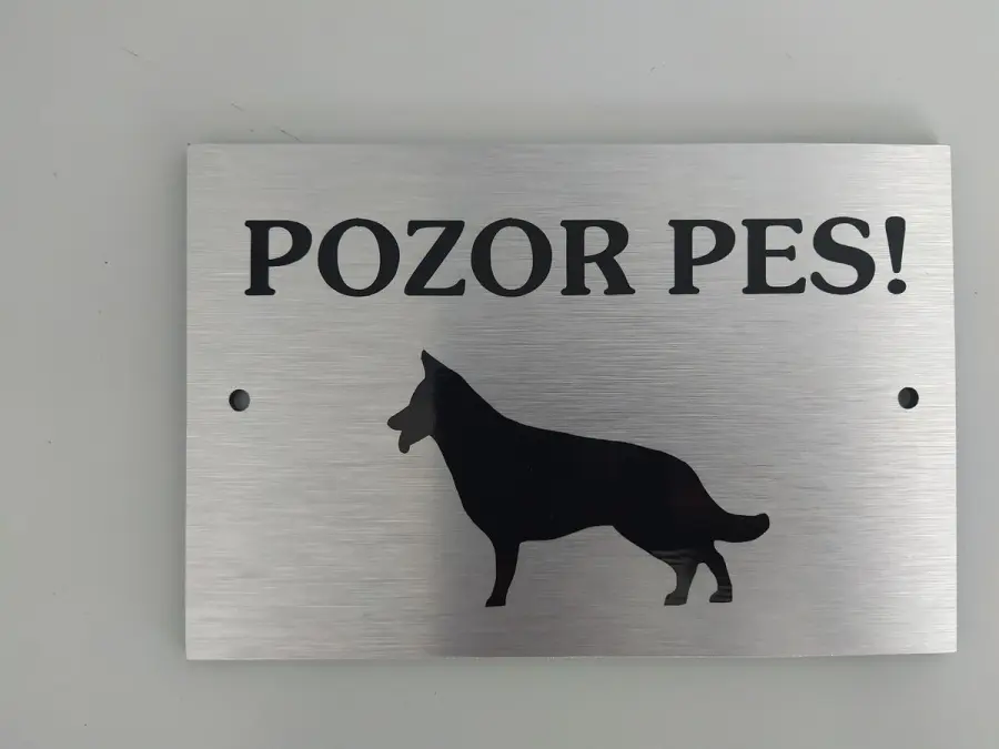 označení / tabulka na bránu, Pozor pes!, 15x10 cm, mix