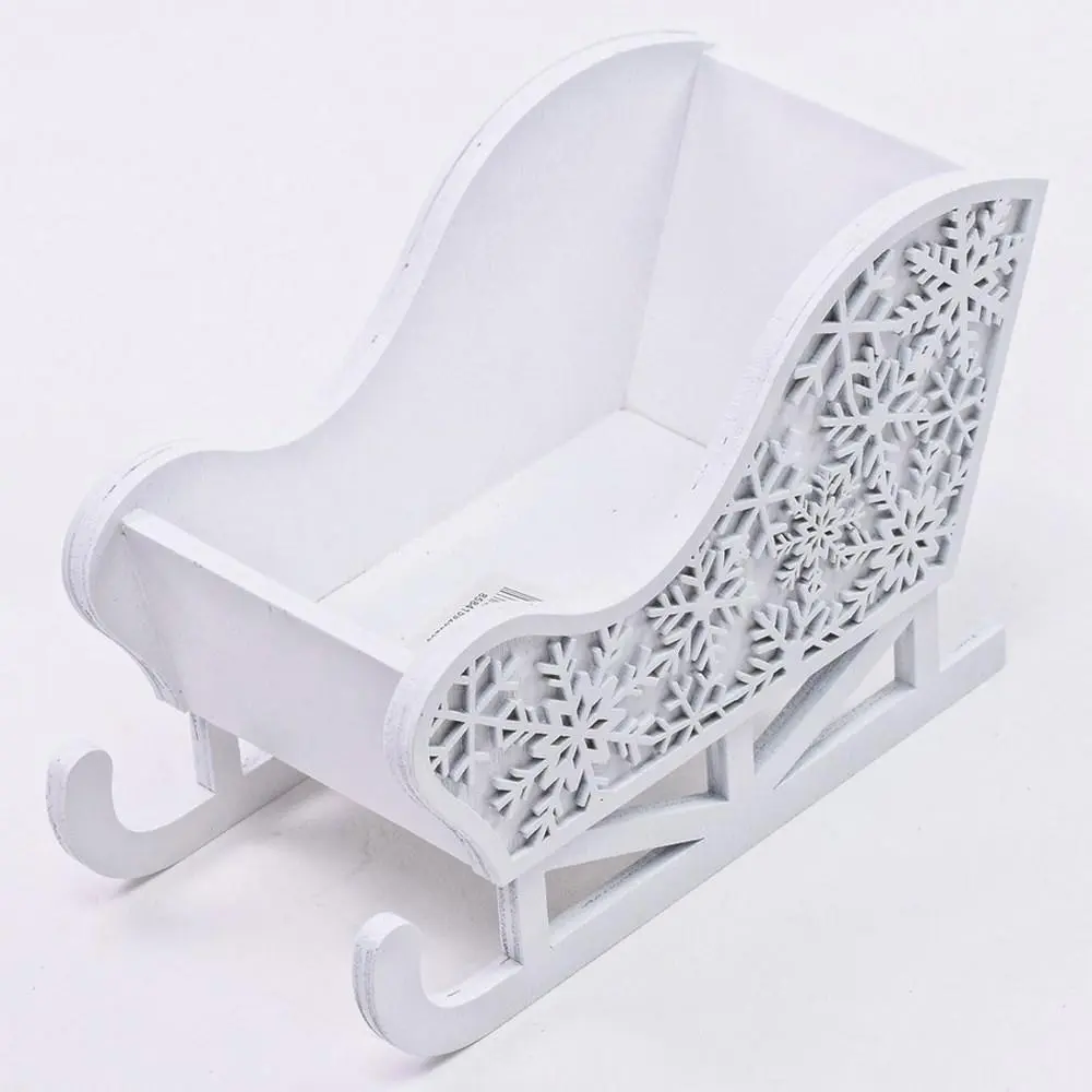Dekorace sáňky 15x7x10cm dřevěné bílé