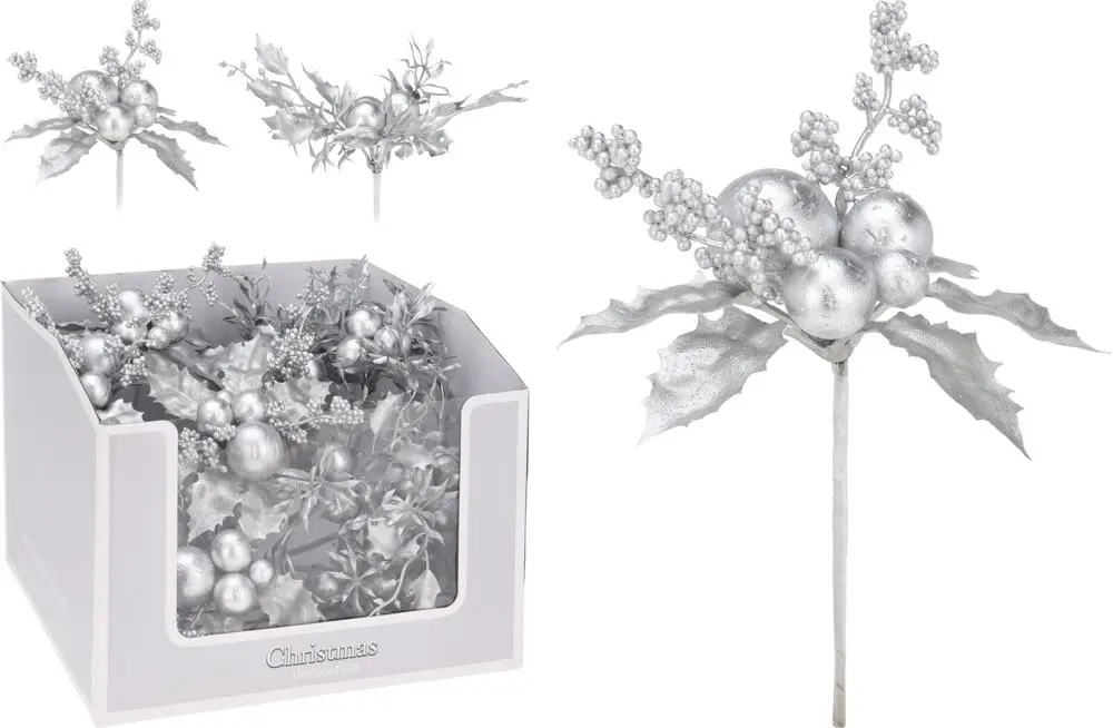 ozdoba zapichovací květ 20cm, barva stříbrná mix