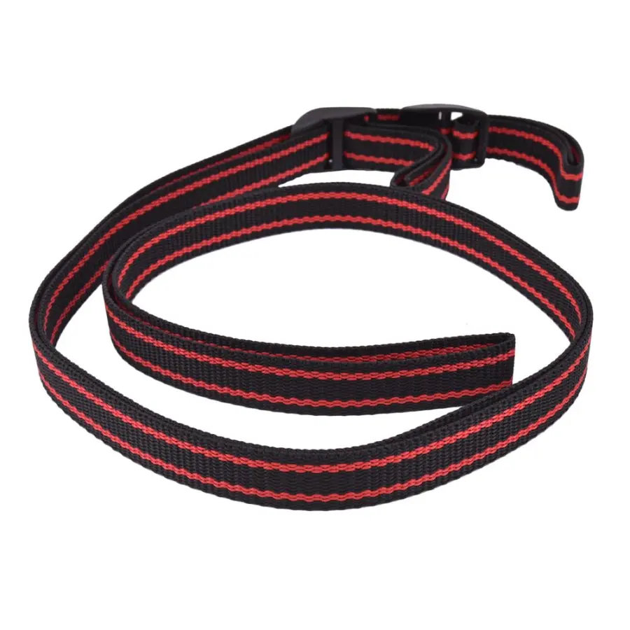 Popruh na tahání saní - 2 m popruh na tahání saní, černý se dvěma červenými pruhy. Vyrobeno z polypropylenu. Součástí je plastová přezka pro nastavení délky pásku.