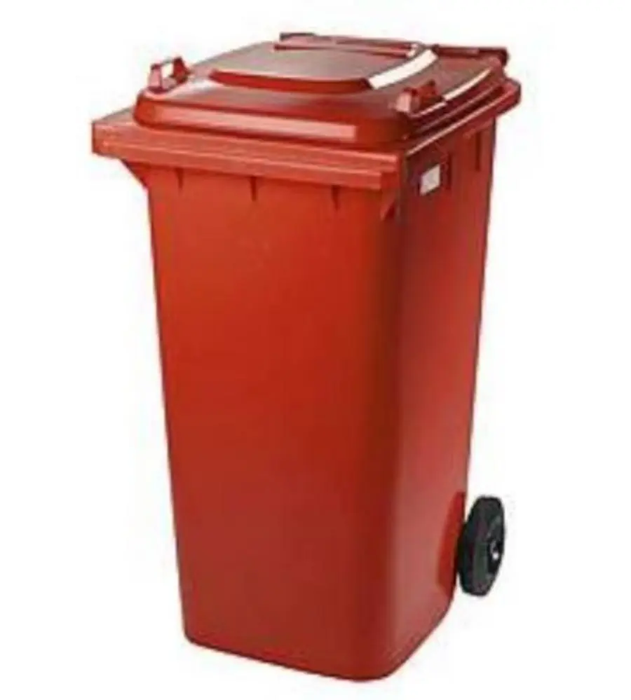 plast, objem 120l, hmotnost 10kg, rozměry vxš 94x48cm, na kolečkách, červený