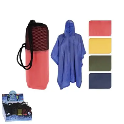 Pláštěnka pro dospělé, univerzální velikost, ve tvaru ponča, materiál PEVA, mix 4 barev: žlutá / červená / tmavě modrá / zelená, pláštěnka v praktickém balení