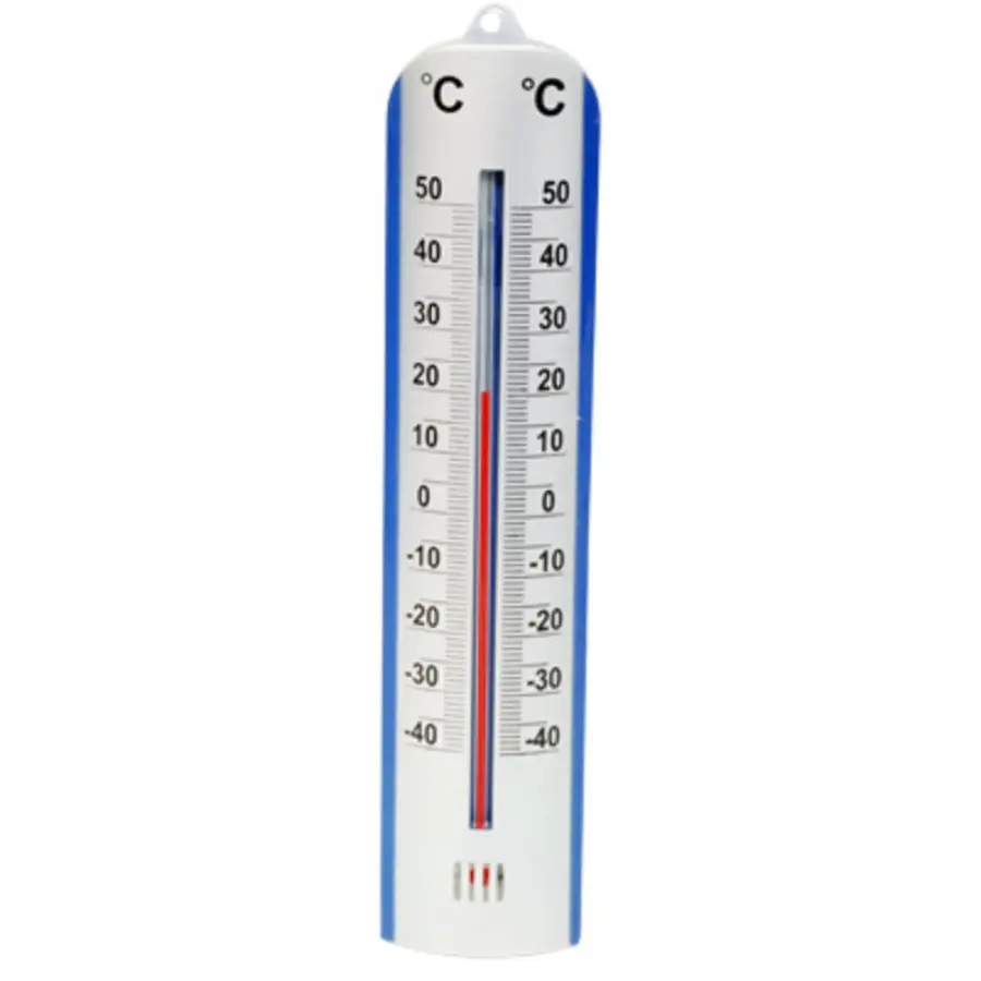 Plastový venkovní teploměr o délce 27,5 cm. Rozsah od +50 °C do -40 °C. Šedá barva.