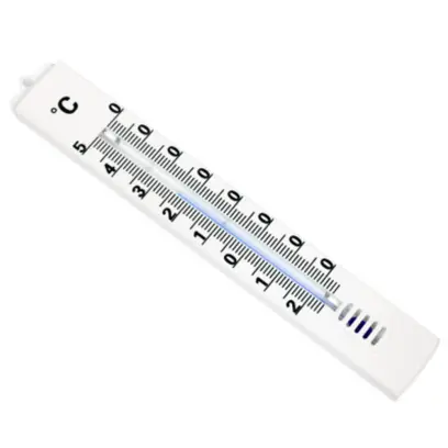 Plastový vnitřní a venkovní teploměr o délce 18 cm. Stupnice teploměru od -30 °C do +50 °C.