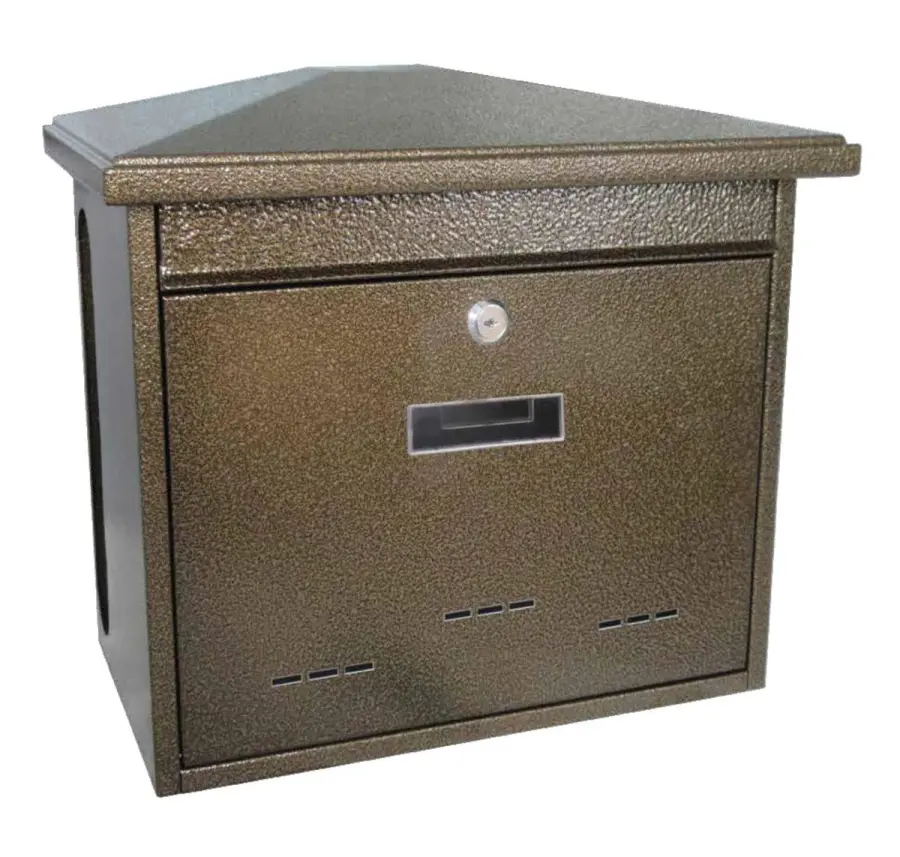 vysoce kvalitní kovové provedení, rozměry 39x34,5x20,5cm, se zadním příčníkem na letáky, je určen do interiéru i exteriéru, bez okénka na jmenovku a zámku s klíčem 2x