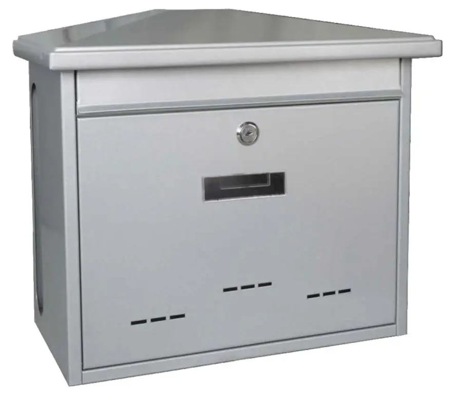 vysoce kvalitní kovové provedení, rozměry 39x34,5x20,5cm, se zadním příčníkem na letáky, je určen pro interiér i exteriér, bez okénka na jmenovku a zámku s klíčem 2x