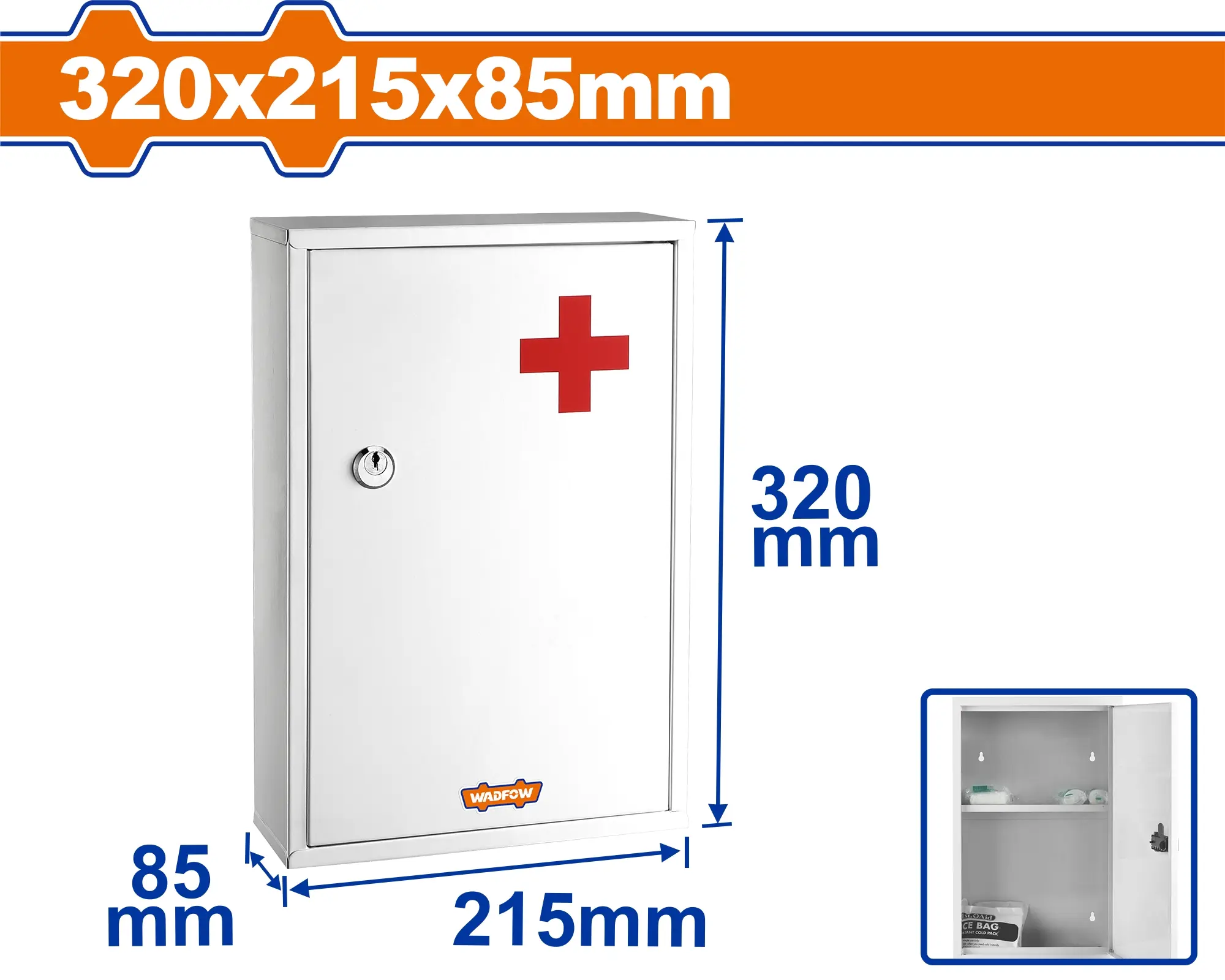 Tato velká nástěnná lékárnička je nepostradatelným vybavením pro bezpečné a přehledné uložení léků a zdravotnického materiálu v domácnostech, kancelářích, školách či dílnách. Je vyrobena z odolného pozinkovaného ocelového plechu o tloušťce 0,6 mm, který je opatřen kvalitním nátěrem pro zvýšení odolnosti a hygienickou údržbu. Díky uzamykatelným dvířkům jsou léky bezpečně chráněny před dětmi a neoprávněným přístupem.