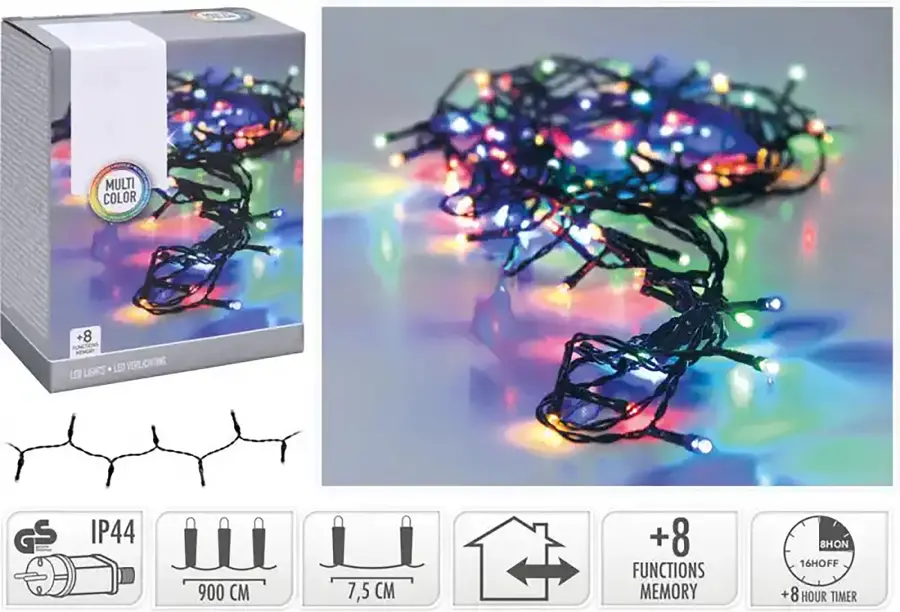 Řetěz vánoční 120 LED s časovačem a funkcemi barevný 9m