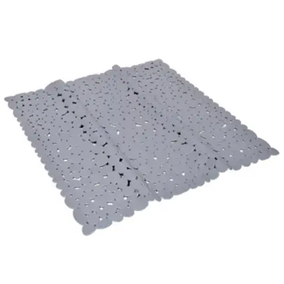 Protiskluzová gumová rohož vhodná do sprchového koutu. Má čtvercový tvar. Rozměry jsou 54 x 54 cm. Má šedou barvu