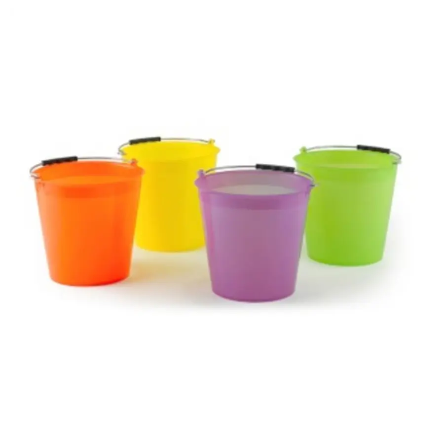 Plastové vědro z pevného materiálu o objemu 6 l. Průměr 23/17 cm a výška 25 cm. Pokud někoho nudí černé kbelíky, určitě si nyní vybere, protože jsou k dispozici ve čtyřech barvách - oranžové, žluté, zelené a fialové.