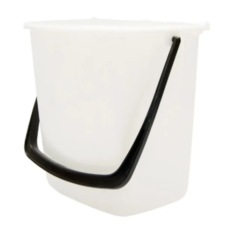 plastový kbelík, univerzální, na odpad s držadlem a výklopným víkem, čtvercový tvar, šířka je 23 cm, výška 27,5 cm, hloubka 17 cm, vhodný i do linky, barva bílá , Objem 7 litrů