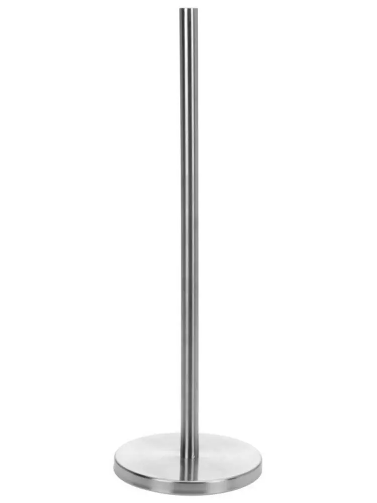 nerezový stojan na toaletní papír, podstavec o průměru 15 cm, výška tyče 45 cm, celková výška 46,5 cm