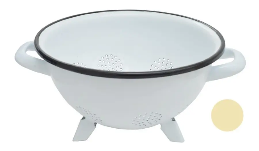 smaltovaný, stojatý, s ušima, bez držadla, průměr 20 cm, barva béžová