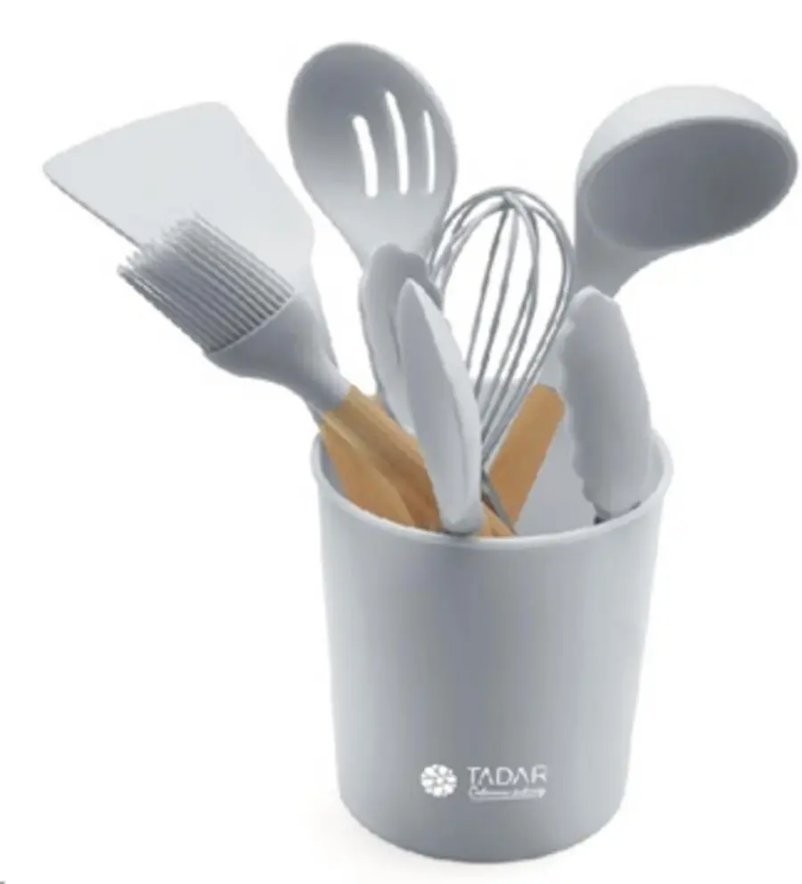 Nářadí kuchyňské 7ks v šedém podstavci.