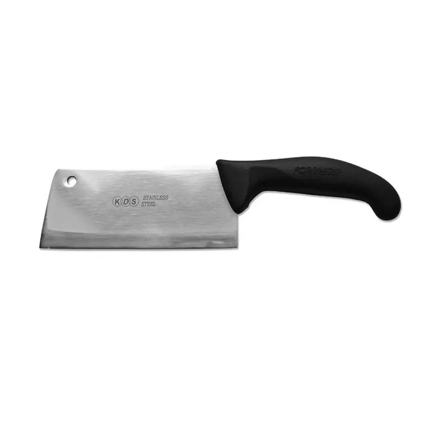 čepel z nerezové oceli, černá plastová rukojeť, očko na zavěšení, celková délka 29 cm, délka čepele 16, š.7cm