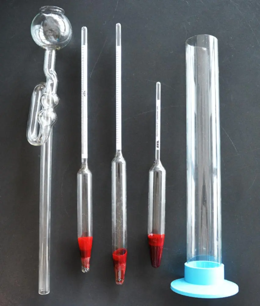 obsahuje lihoměr, moštoměr, vínoměr, měrný válec, skleněnou kvasnou zátku