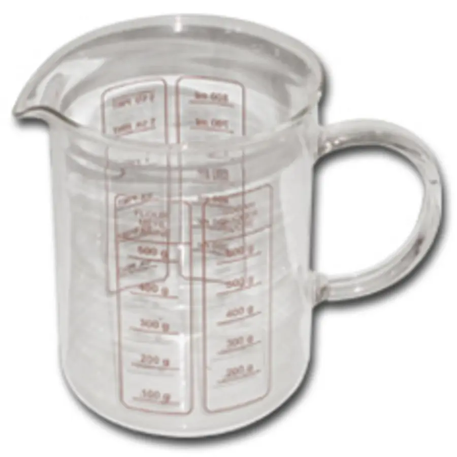 skleněná odměrka, objem 1 l, s výlevkou, s uchem, Simax, vhodná do myčky, mikrovlnné trouby...