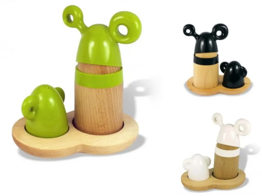 plast, stojan z naolejovaného dřeva, rozměry /dxv/ 14x7 cm, výška mlýnku na koření 7 cm, výška mlýnku 15 cm, různé barvy