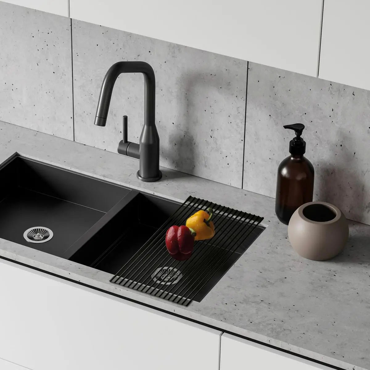 kovový skládací ROLL UP sušák potažený silikonem Jednou z největších výhod multifunkčního odkapávače je, že jej stačí vybrat jen tehdy, když jej opravdu potřebujete. Tradiční odkapávače zabírají místo na kuchyňské lince, jsou těžkopádné na čištění a v našich kuchyních nevypadají esteticky. Naproti tomu se odkapávače dají otevřít za několik vteřin a po použití jednoduše složit. Můžete jej uložit, na zeď za umyvadlem, do zásuvky či police. Velikost: 43x33 cm vzdálenost mezi tyčemi: 1,5 cm