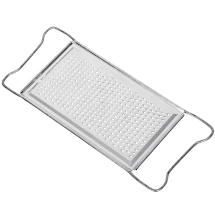 z pozinkovaného plechu, na křen, celková délka s držadly 27 cm, šířka 11 cm