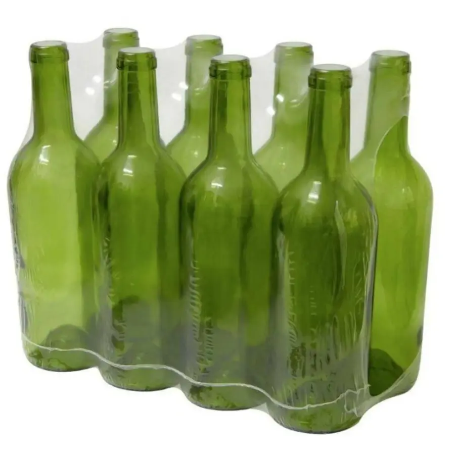 Skleněná láhev na víno, objem 750 ml, sada 8 kusů, zelená
