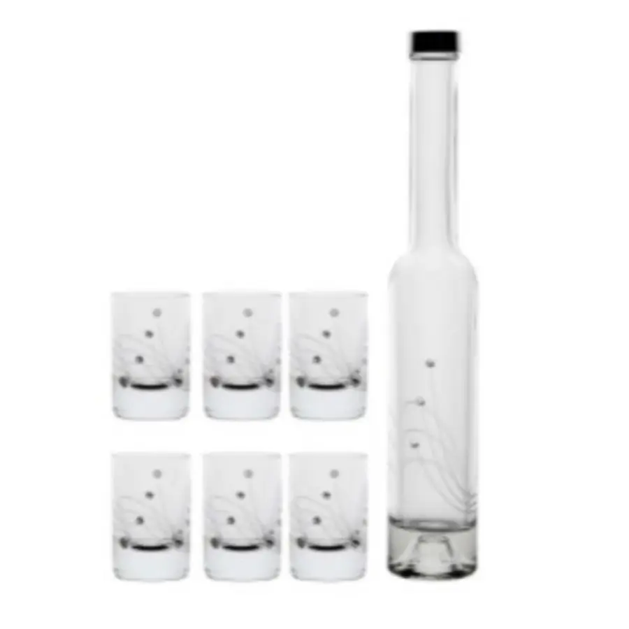 Sada láhev Platina 200ml + sklenice Spirit 30ml s dekorací Rays - Crystals jsou vysoce kvalitní slovenské výrobky. Zvýšená odolnost proti odštípnutí a rozbití. Na rozdíl od hrubého těsnění umožňuje splnit vyšší hygienické požadavky a dodává sklu prof