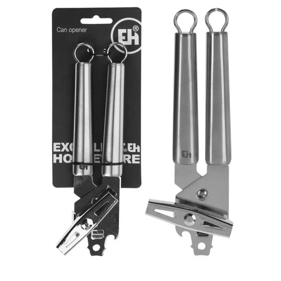 otvírák na konzervy, pochromovaný kov s nerezavějící ocelí 410, délka 215mm, váha 216g, lesklý design