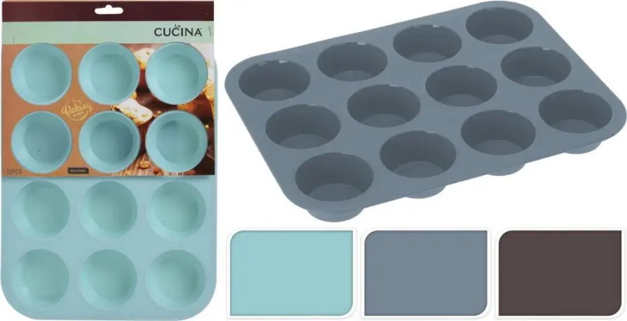 silikonová forma na muffiny 12ks, velikost 33x25 cm, velikost jednoho košíčku na muffiny průměr 6cm, výška 2,5 cm