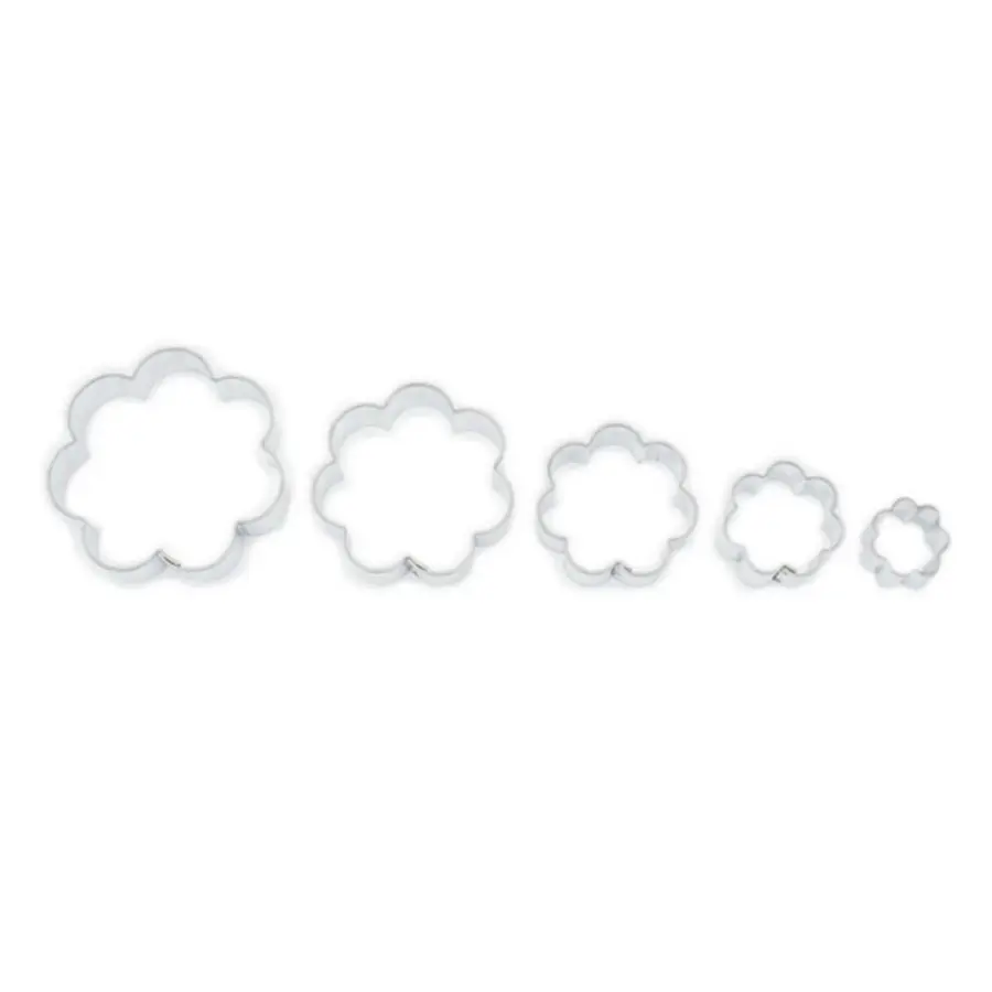 5dílná sada pocínovaných vykrajovátek ve tvaru květin, 5 velikostí o průměru 5,5/4,5/4/4/3/2cm