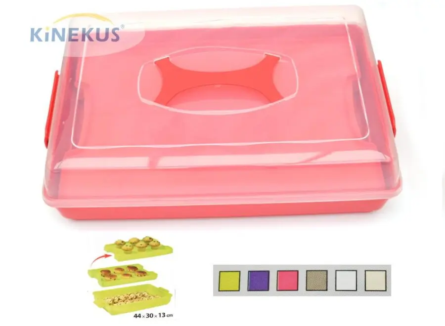 plastová, vxšxh 13x44x30 cm, s krytem, uvnitř vložka s možností druhého patra na zákusky, koláče