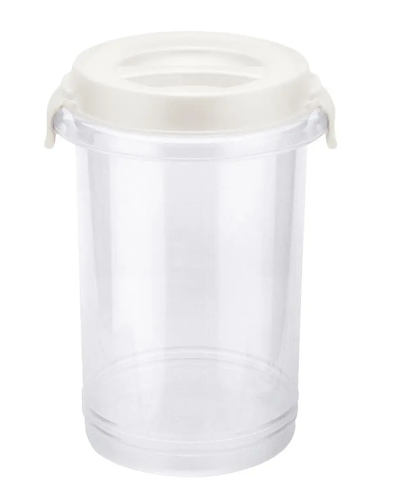 plastová, na potraviny objem 2,25 l, průměr 13 cm, hloubka 28 cm, kulatá, vysoká, transparentní - slonová kost