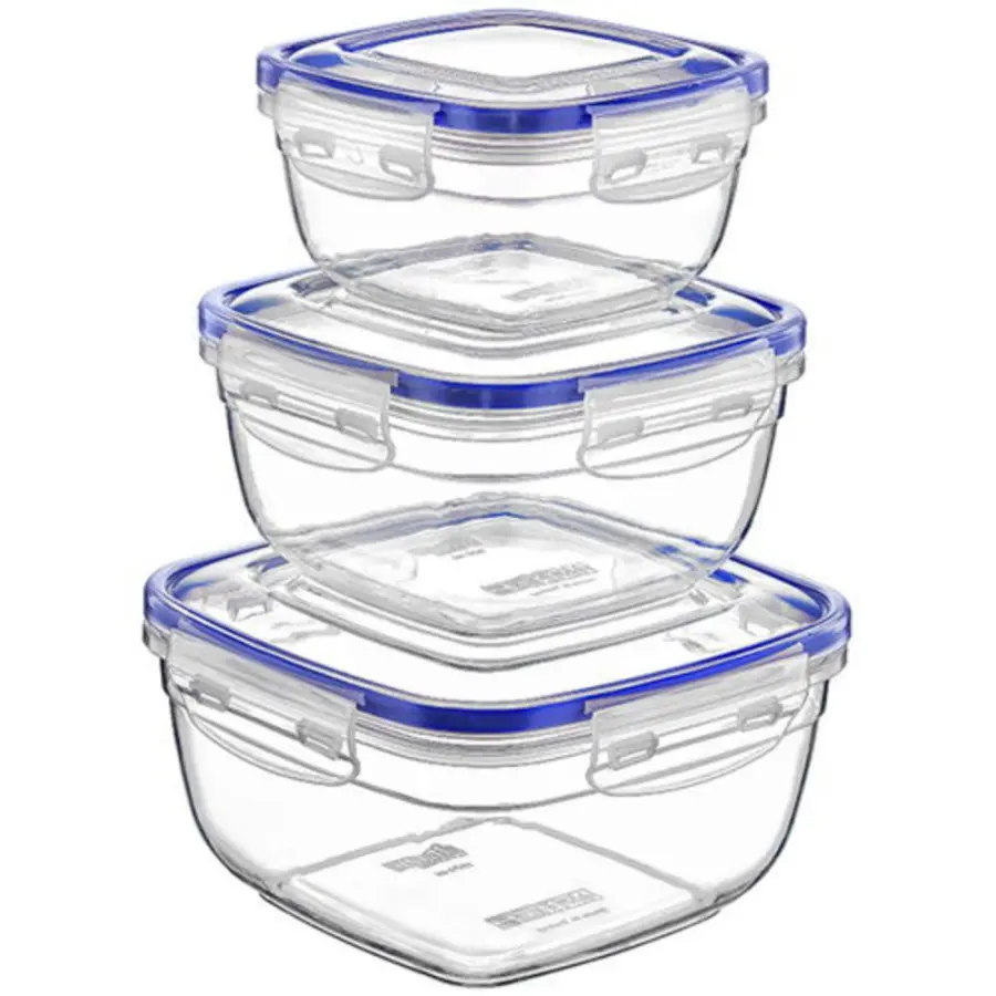 plastové dózy s těsněním, čtvercový tvar, objem: 500ml, 900ml, 1500ml, silikonové těsnění pro 100% těsnící (vzduch, kapalina), vhodné do myčky nádobí, vhodné do mikrovlnky, vhodné pro styk s potravinami, v mrazícím prostoru
