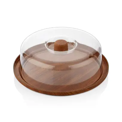 Plastový box na dort s imitací dřeva ozdobí každý stůl. Průhledný kryt má rukojeť pro snadné zvedání.