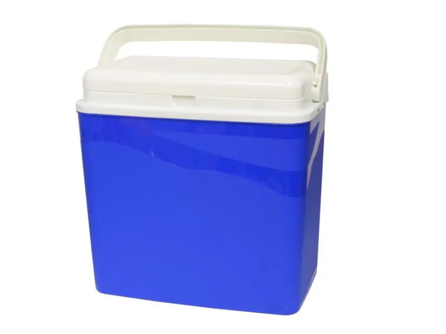 plastový chladicí box o objemu 24 l, rozměry boxu 36x20 cm a výška 37 cm, určený k přepravě a udržování teploty potravin a nápojů.