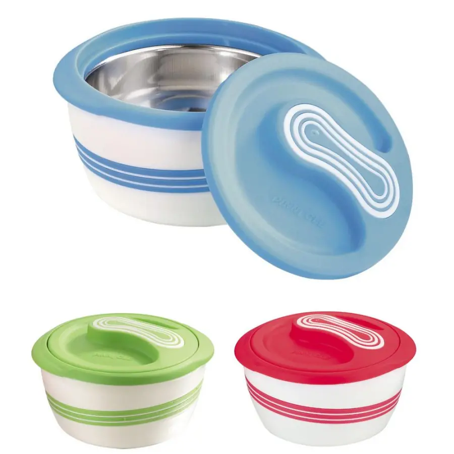 plastová mísa s vložkou z nerezové oceli, objem 3,5 l, pro udržování teploty teplých a studených potravin, mix barev