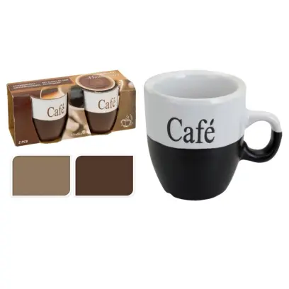 Hrnek o objemu 150 ml, balený po 2 kusech, design káva, k dispozici ve 3 barevných variantách: světle hnědá, tmavě hnědá, černá.