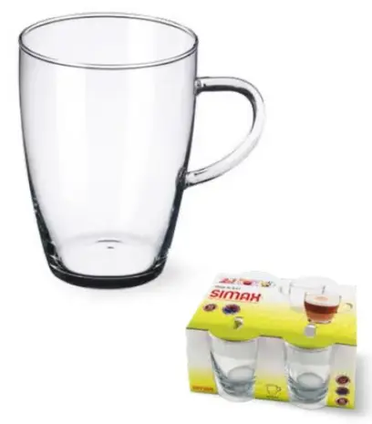 skleněný hrnek SIMAX, model LYRA, objem 400 ml, balení po 4 kusech v otevřené krabici, vhodný i na kávu