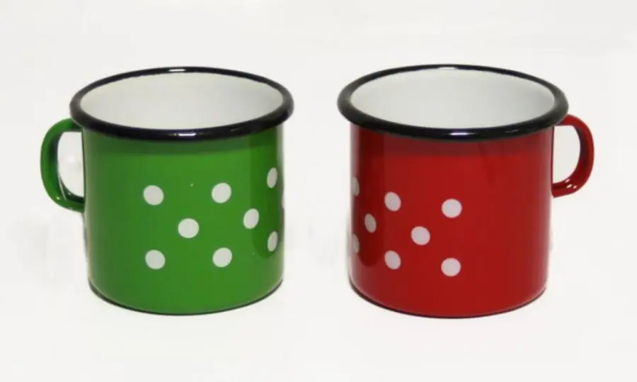 smaltovaný, průměr 8 cm, objem 0,35 l, s dekorem