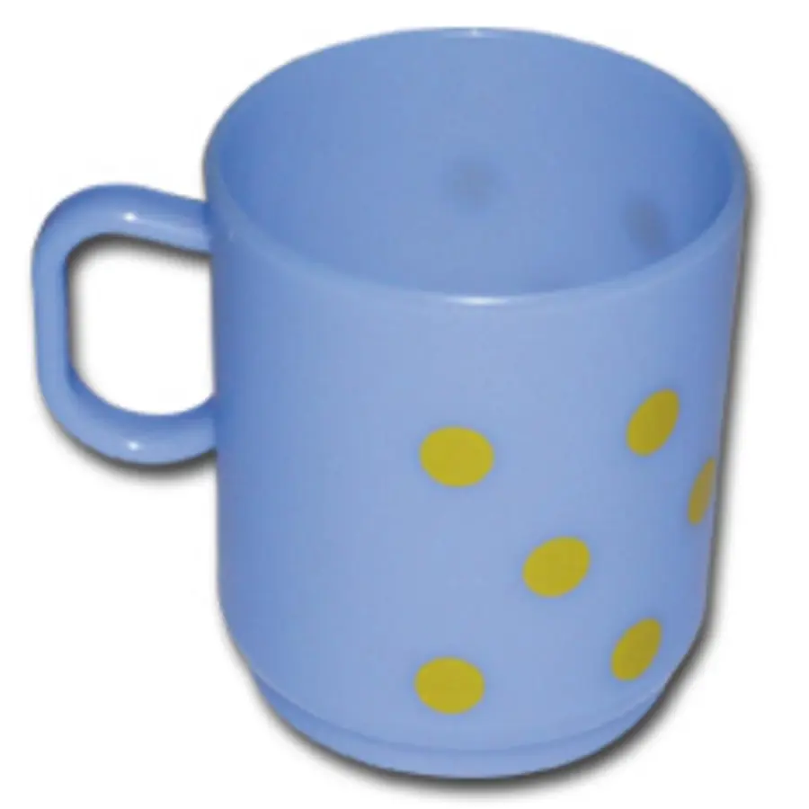 plastový, objem 250 ml, modrý s tečkami