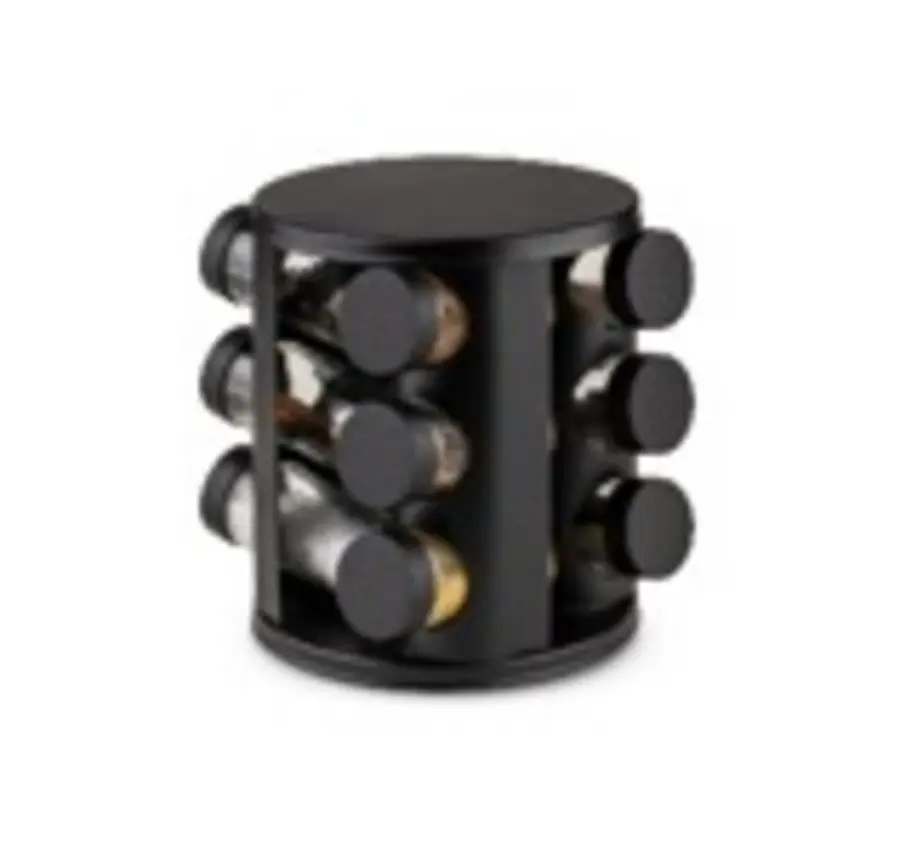 Otočný stojan na koření 12 ks. Stojan je vyroben z vysoce kvalitní nerezové oceli na otočném podstavci umožňuje volný přístup ke všem kořenkám. Nádoby jsou vyrobeny ze silného skla. Sada obsahuje: otočný stojan, 12 kořenek se závitem. Výška 17,5 cm,