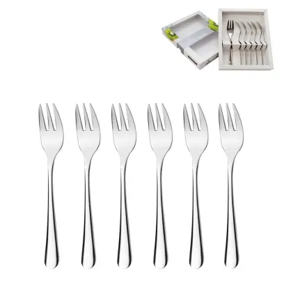 steaková vidlička, sada 6 kusů, materiál nerezová ocel 430, tloušťka 1,2 mm, délka 195 mm, rukojeť z tvrdého dřeva se dvěma nýty, balení v krabici s okénkem