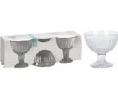 Sklenice na zmrzlinu o objemu 475 ml - sada 2 kusů jsou vyrobeny z vysoce kvalitního čirého, lesklého skla. Výška 11 cm, průměr 11 cm. Lze mýt v myčce nádobí.