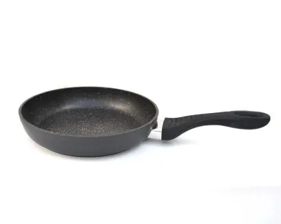 pánev s hliníkovým základem a keramickou vrstvou s nepřilnavou úpravou, průměr 24 cm, prskaný vzor (mramorový), má poplastovanou rukojeť, vhodná na všechny typy sporáků včetně indukce