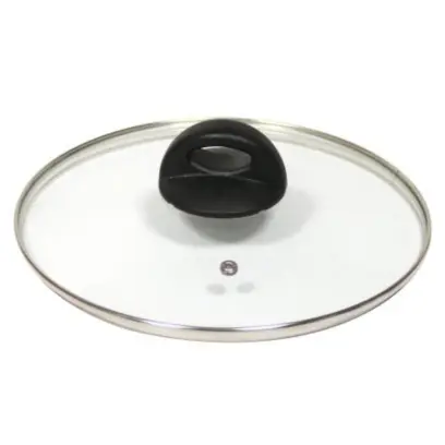 skleněná, univerzální, průměr 26 cm, s plastovým úchytem, ​​nerezový lem, s otvorem pro odvod páry
