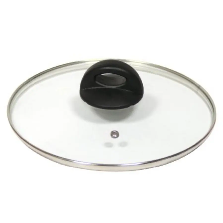 skleněná, univerzální, průměr 26 cm, s plastovým úchytem, nerezový lem, s otvorem pro odvod páry