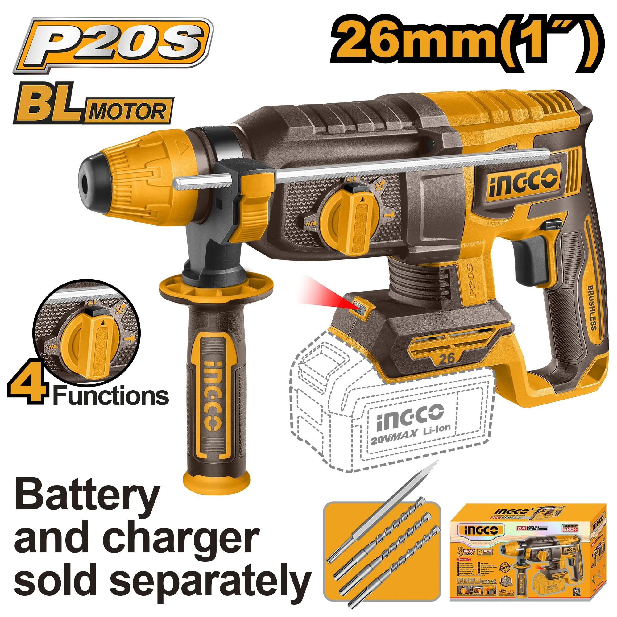 Kladivo vrtací AKU 26 mm – čtyř funkční nástroj s bezkartáčovým motorem