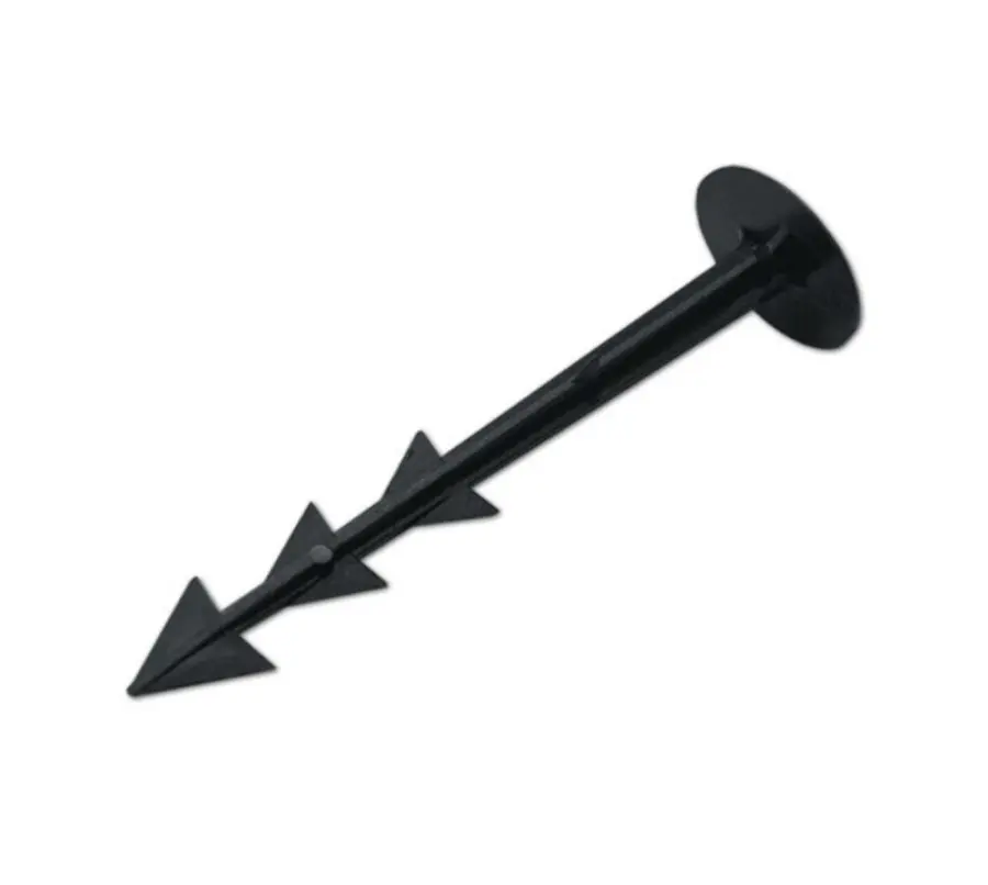 plastový upevňovací kolík na netkanou textilii, díky své pevnosti a průměru udrží netkanou textilii i při silnějším větru, délka 12,5 cm, průměr upevňovací desky 3 cm, sada 20 ks.