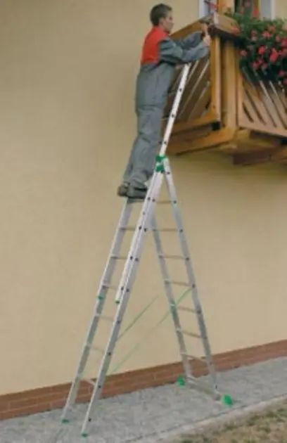 hliníkový, třídílný, úprava pro použití na schody, 3x9 příčkový, přepravní délka 258 cm výsuv 569 cm, hmotnost 14,2 kg, nosnost do 150 kg