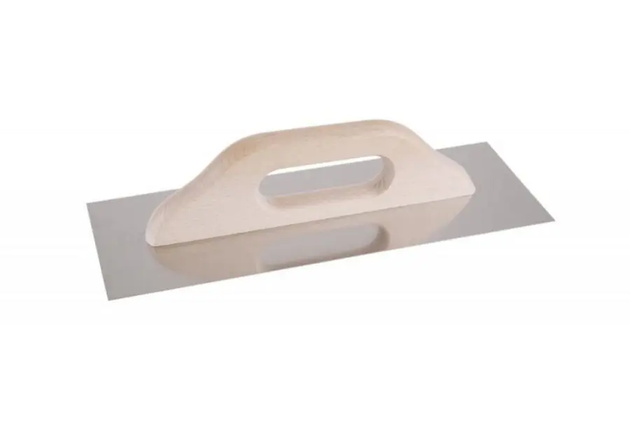 rovné hladítko z nerezové oceli 260x130 mm s dřevěnou rukojetí, používané k nanášení lepidel pod obklady, k nanášení stěrek, omítek, tmelů apod.